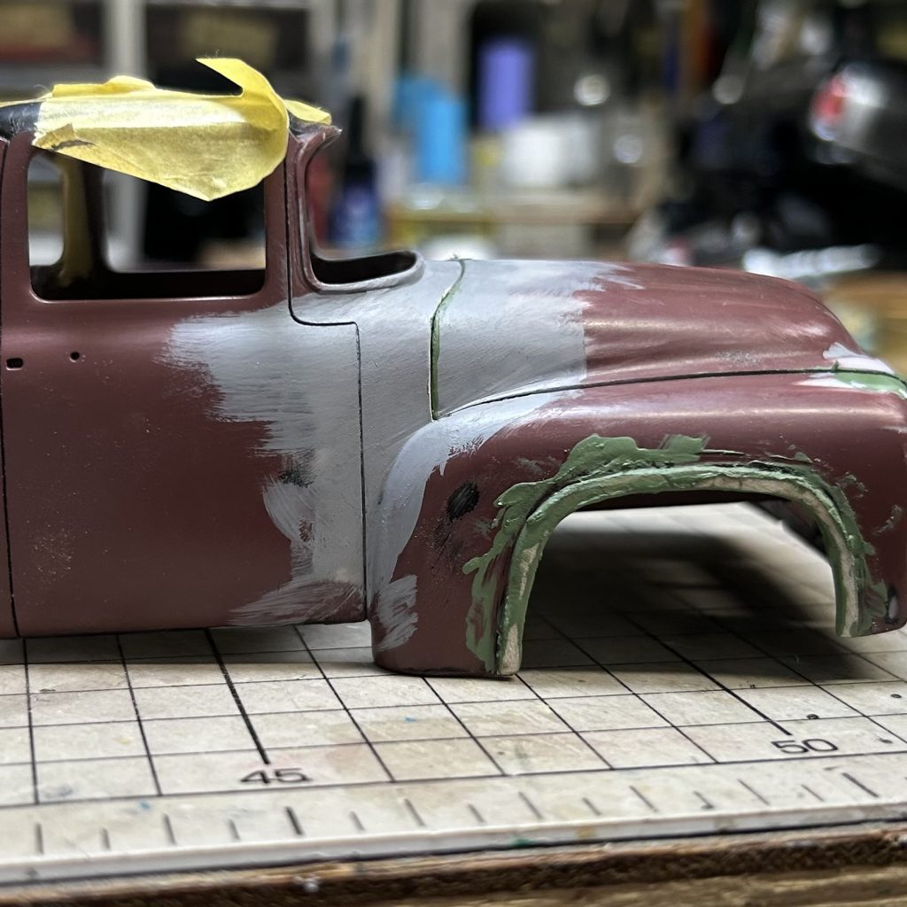フロントフェンダーの端っこに甘い感じのリップがあるんですが、あまりにもチープなのでエポキシパテを使って大げさ気味に加工する。